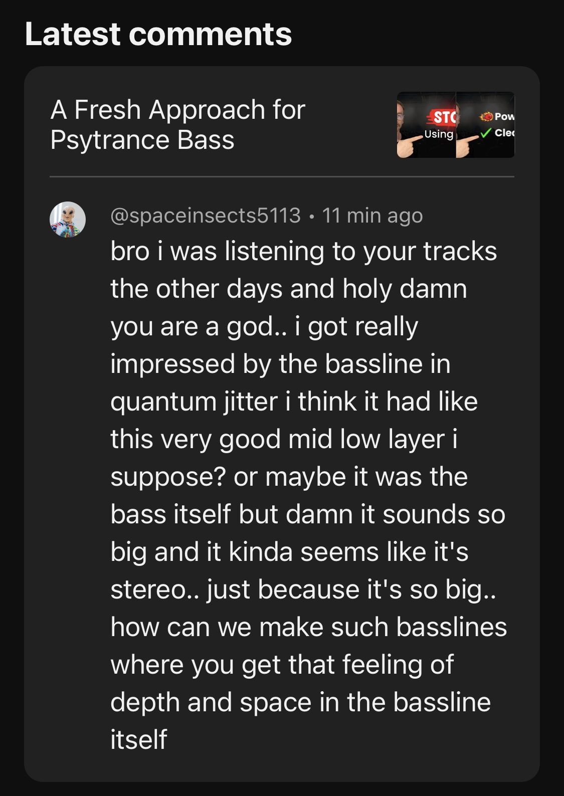 Weekly livestreams: Live Q&A, watch me produce, break-down students tracks, or teach requested topics.
